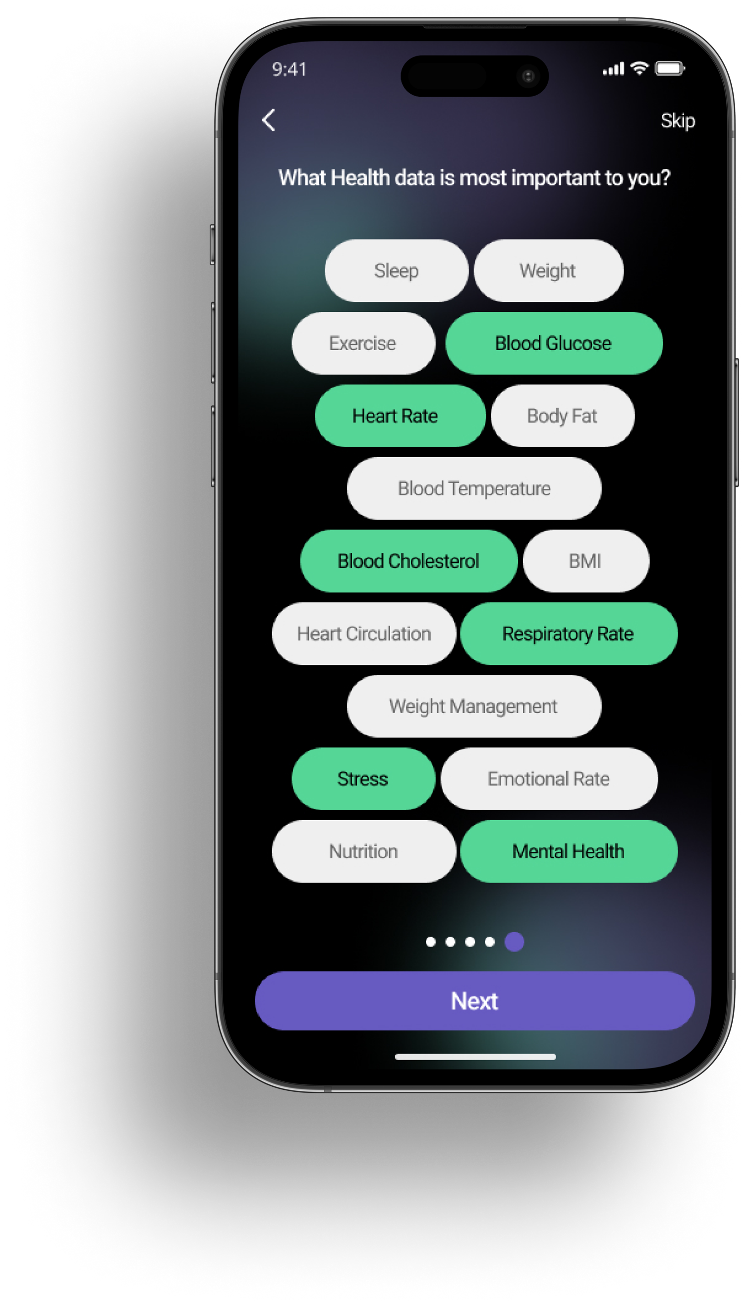 Given that Maka focuses on a holistic health approach, they would like to incorporate Maka’s 4 pillars (mind, body, being, and fuel) to the screen that asks what the user’s interests are and organize each topic under the corresponding pillar