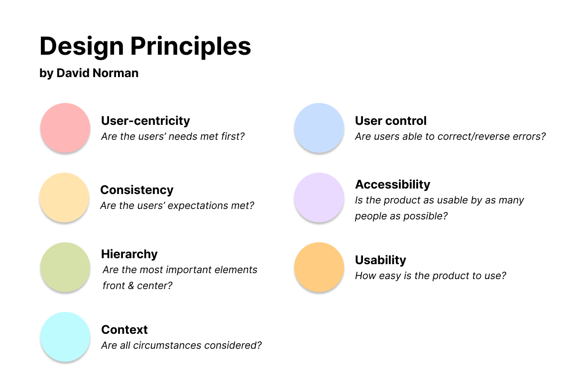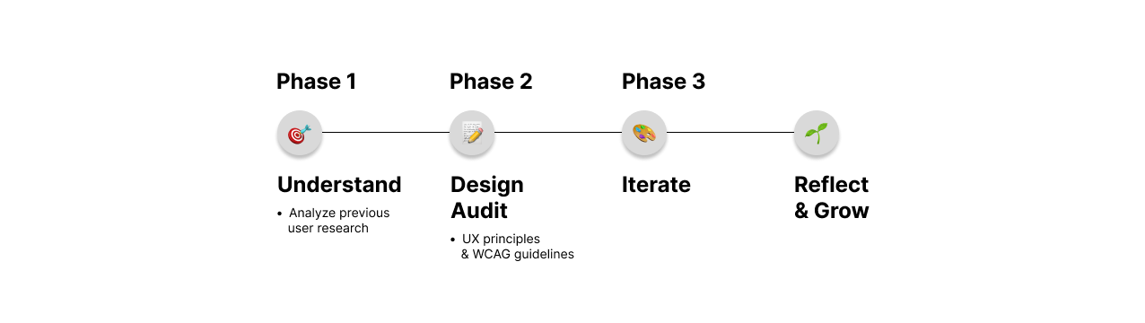 Moving forward, we conducted an audit based off of David Norman’s design principles & the WCAG guidelines: